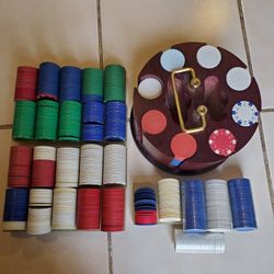 600+ POKER CHIPS WOOD CAROUSEL Carrying CADDY$20Hacienda Heights, CA
