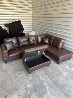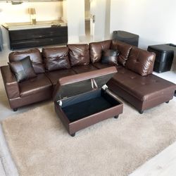 Free Delivery! Brown Faux Leather Sectional Couch with Storage Ottoman$450Sacramento, CA