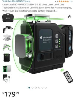 Laser Level,BOHDANGE 3x360° 3D 12 Lines Laser Level Line Tool,Green Cross Line Self Leveling Laser Level for Picture Hanging, Wall Mount Bracket,Recha$59Queens, NY