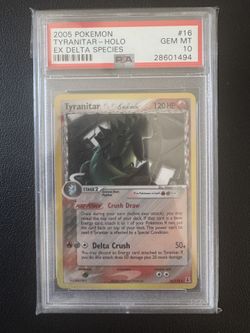 2005 POKEMON EX DELTA SPECIES TYRANITAR #16 HOLO FOIL PSA 10 GEM MINT #(contact info removed)97$1,500Santa Ana, CA