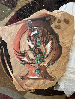 Indian Sandstone Painting Of Kachina On Pottery Signed TP Todd$125Phoenix, AZ