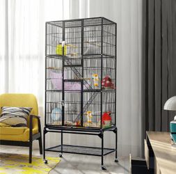 Heavy-duty Metal Construction, Detachable Rolling Stand, 2 Front Doors, 8 Feeder Doors, 1cm/0.4" Bar Spacing, Free Feeders & Perches & Bungee Rope, $250Paramount, CA