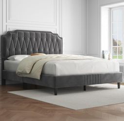 Queen Size Upholstered Bed Frame with Button-Tufted Headboard/ Height Adjustable Headboard/ Mattress Foundation / Wooden Slat Support / No Box Spring $220Paramount, CA
