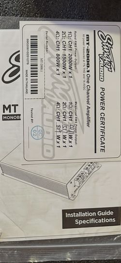 Amplifier STINGER. MT2000,.1 RMS. $150San Bernardino, CA