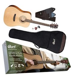 Cort 6 String Acoustic Guitar Pack, Right, Open Pore, Full (EARTHPACKOP-A)