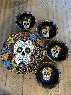 Williams Sonoma Day of the Dead Dia De Los Muertos Dinner Plates Halloween Set$40Carson, CA