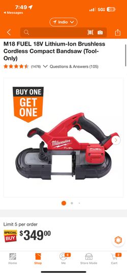 M18 FUEL 18V Lithium-Ion Brushless Cordless Compact Bandsaw (Tool-Only)$250Coachella, CA
