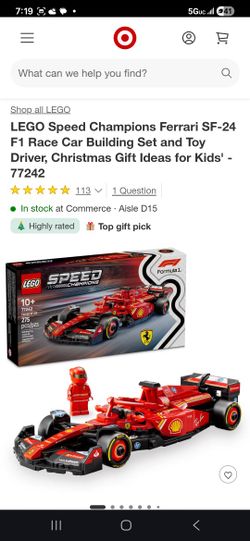 LEGO Speed Champions Ferrari SF-24 F1 Race Car Building Set and Toy Driver, Christmas Gift Ideas for Kids' - 77242$20Monterey Park, CA