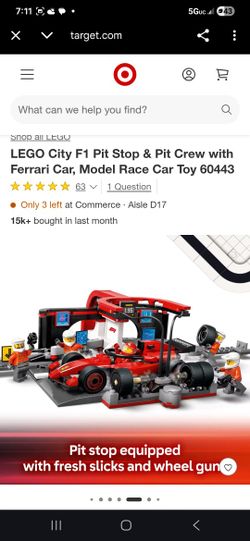 Brand New Sealed LEGO City F1 Pit Stop & Pit Crew with Ferrari Car, Model Race Car Toy 60443$25Monterey Park, CA