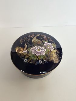 Vintage National Silver Company Japan Cobalt Blue Porcelain Lidded Dish – Peacocks & Floral Design$20Norwalk, CA