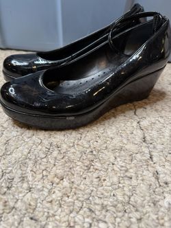 BCBGENERATION LADIES SIZE 6 BLACK PATENT LEATHER ANKLE STRAP WEDGE HEELS$10Jamison, PA