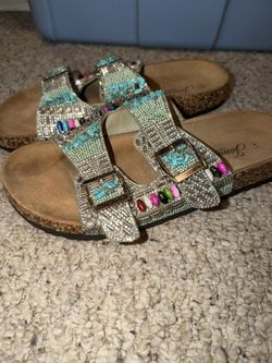 JOMIX LADIES SIZE 41 SILVER CRYSTAL & COLORFUL SANDALS FROM ITALY $10Jamison, PA