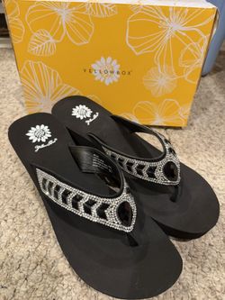 NEW IN BOX YELLOWBOX LADIES 9.5 BLACK 3” PLATFORM SANDALS CHUNKY WEDGE FLIP FLOPS$10Jamison, PA