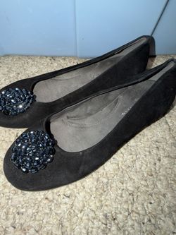 AEROSOLES SZ 7 BLACK SUEDE BALLERINA FLATS WITH BLUE GEMS $10Jamison, PA