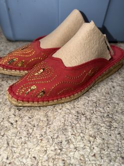 BASS LADIES SZ 6.5 RED ESPADRILLE 3” WEDGE OPEN TOE HEELS$10Jamison, PA