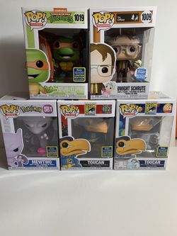 SDCC Funko POP Toucan, Dwight, MewTwo, Michelangelo$255Etiwanda, CA