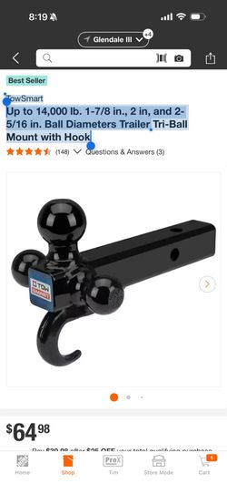 TowSmart Up to 14,000 Ib. 1-7/8 in., 2 in, and 2-5/16 in. Ball Diameters Trailer$50Peoria, AZ