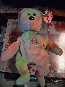 TY BEANIE BABY PEACE BEAR MULTICOLOR $100Pt Orange, FL