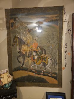 HUGE Mughal Framed Rajasthani Painting of Maharaja on Horseback - India$450Wht Settlemt, TX