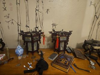 Pair Of Antique Chinese Lanterns Made Of Wood.$150Wht Settlemt, TX