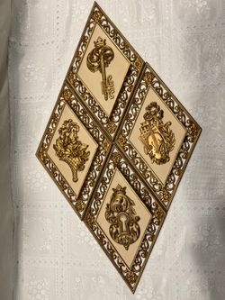 4 Gold Key & Floral Diamond Hollywood Regency plaques$25Midland, MI