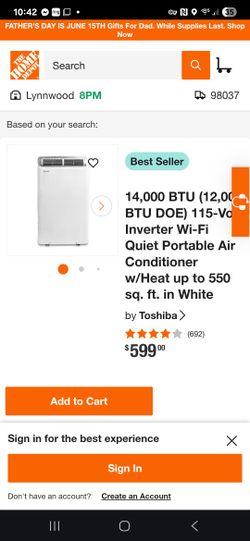 Toshiba 14000 Btu WiFi Ac.$350Bothell, WA
