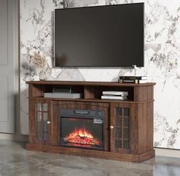 Brown Wooden Tv Stand With Fire Place $175Bothell, WA