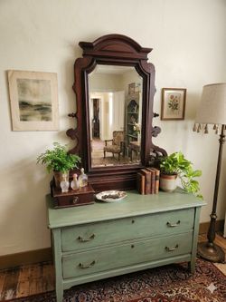 Antique Vintage Brown Vanity Or Wall Mirror - Dresser Top Victorian/Early 20th Century with drawers Maximalist Eclectic Grand Millennial $150Seattle, WA