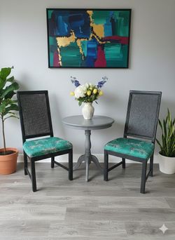 Pair Of 2 Fun Unique MCM/Hollywood Regency Woven Back Chairs Parisian Cottage Cabin Black Bold Eclectic Maximalist