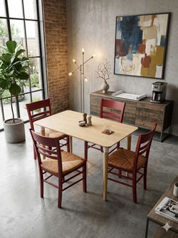 Charming Italian Made Red Shaker Reed Chairs & IKEA Bamboo Dining Table Set or seperates