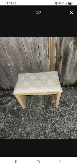 Vintage 50s 60s MCM blonde limed oak finish vanity piano stool bench with storage mid-century modern