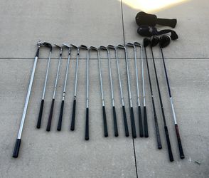Lot Set Of 15 Golf Clubs Woods Irons Wedges Covers Bazooka Cleveland +++$100Brooksville, FL