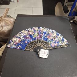 Blue Fabric Folding Oriental Style Decorative Hand Fan With A Floral Pattern & Gold Accents $3Fort Lauderdale, FL
