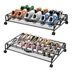 Under Bed Shoes Storage, 2 Pack Rolling Under-bed Storage Containers with Wheels, Under Bed Shoe Organizer Breathable Mesh Fabric with Metal Frame$40Long Beach, CA