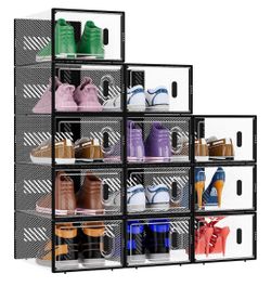 12 Pack Stackable Shoe Storage Boxes Fit Size 9, Thickened Clear Shoe Box Bins with Lids, Plastic Foldable Organizer Sneaker Storage Containers (Large$35Long Beach, CA