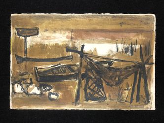 Raymond Guerrier “Boats and Nets” 1956 Signed Lithograph French Mid Century Modern $150Seattle, WA
