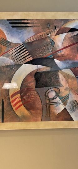 Marlene Healey Large Framed Art. Size: 53.5 in. X 38 in. British/American (1952 - ) Title: Art Deco Geometric Enameled$250Boca Raton, FL
