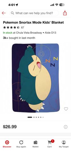 Pokémon Snorlax Mode Kid’s Blanket$20San Diego, CA