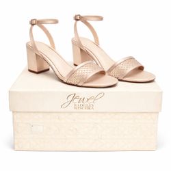 Jewel Badgley Mischka Nadia Champagne Block Heels Sz 9 Rhinestone Strap Sandals$25Geneva, IL