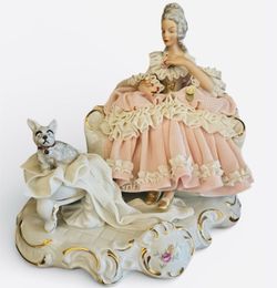 Sitzendorf Dresden Lace Porcelain Figurine Rococo Lady Dog West Germany c1950s$375Geneva, IL