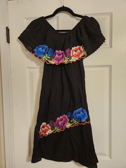 Black Mexican Campesina Dress With Colorful Flowers Size Small$40Whittier, CA