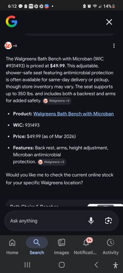Walgreens Bath Chair with Back Rest$25Oregon City, OR