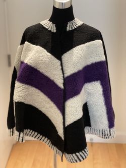 NWT Maje Chevron Cape Gray White Purple Poncho One Size Small S Medium M Large L$159Queens, NY