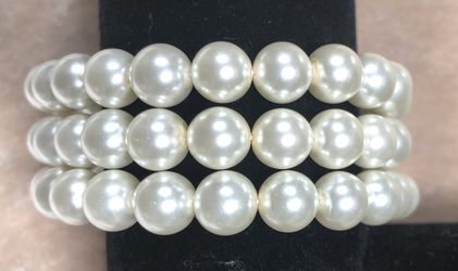 8MM White Glass Based Pearl w Sterling Silver Triple Bracelet$9La Crescenta-Montrose, CA