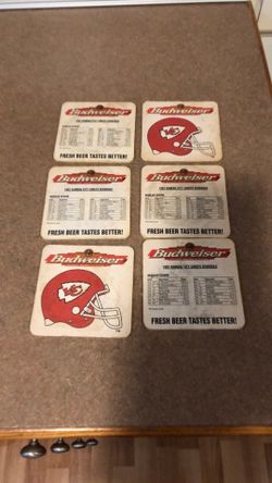 Set of 6 Budweiser/ Chiefs 1997 Schedule Beer Coasters$4Merriam, KS
