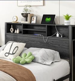 Bed frame with storage headboard, metal platform bed with charging station, bookcase storage. Quen Size 60" X 80"$130Arlington Heights, IL