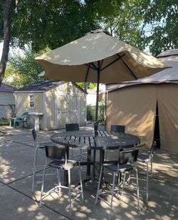 High Metal Round Table With Six Chairs And Umbrella$299Dearborn, MI