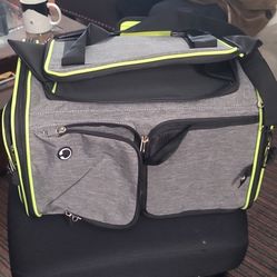 Gray Soft-Sided Dog Carrier Fabric Neon Trim Multiple Zippered Compartments Tote$25Kent, WA