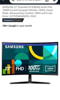 27" Essential S3 (S36GD) Series FHD 1800R Curved Computer Monitor, 100Hz, Game Mode, Advanced Eye Comfort, HDMI and D-sub Ports, LS27D366GANXZA, 2024$145Ceres, CA