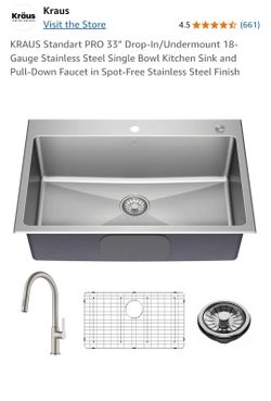 Standart PRO 33” Drop-In/Undermount 18-Gauge Stainless Steel Single Bowl Kitchen Sink and Pull-Down Faucet in Spot-Free Stainless Steel Finish$250Ceres, CA